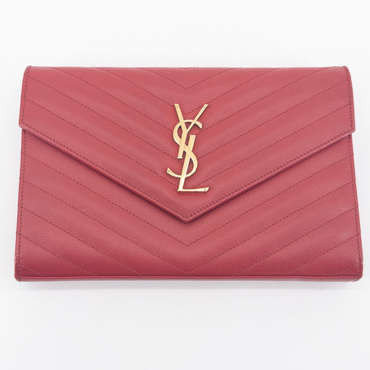 Saint Laurent Wallet on Chain – Grained Leather – Red