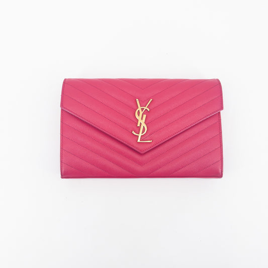 Saint Laurent Wallet on Chain – Grained Leather – Pink