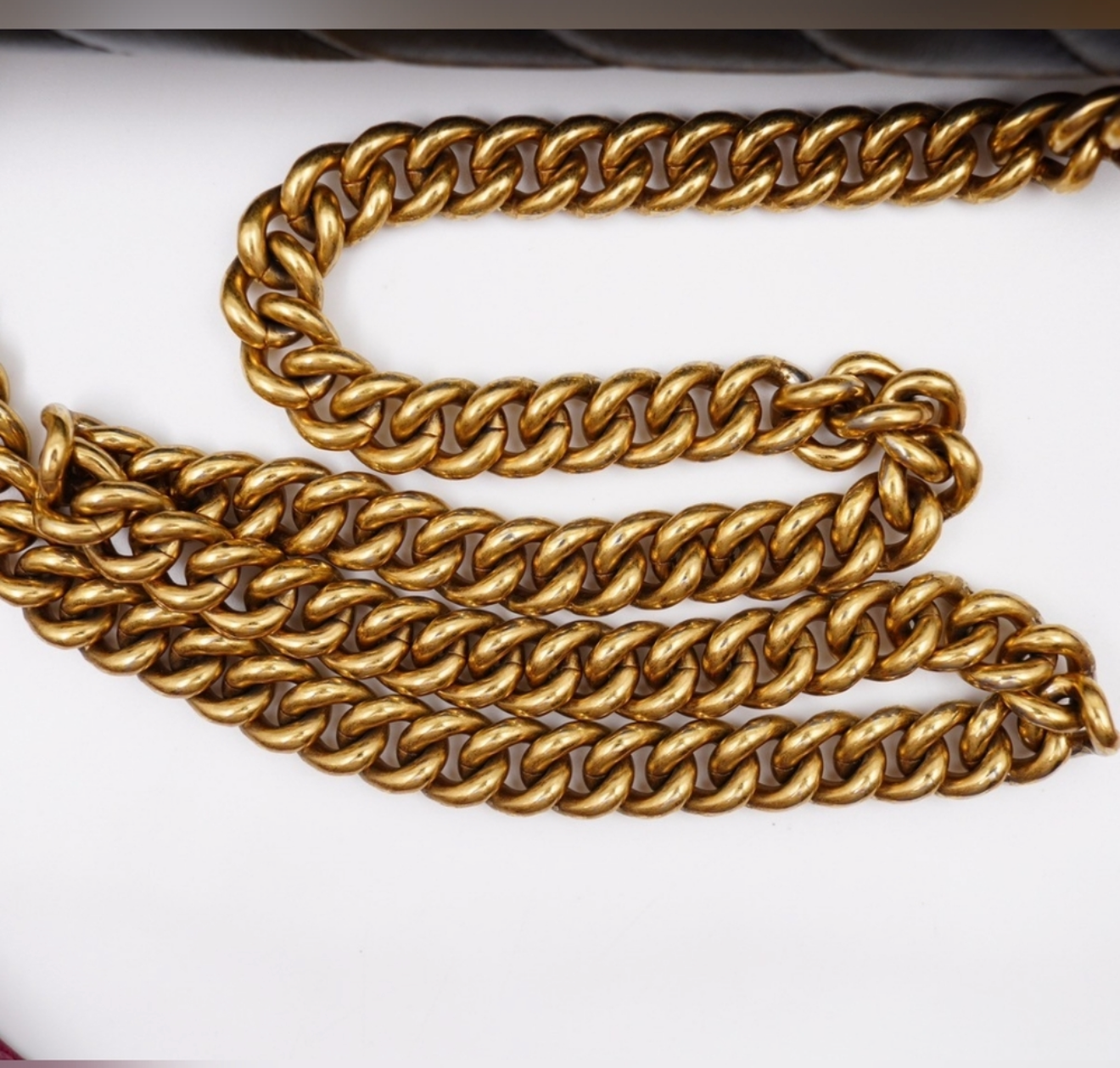 - Hardware: The gold-toned hardware exhibits some faint hairline scratches. There is some minor fading on the Double G logo plaque, which is common for this hardware.
