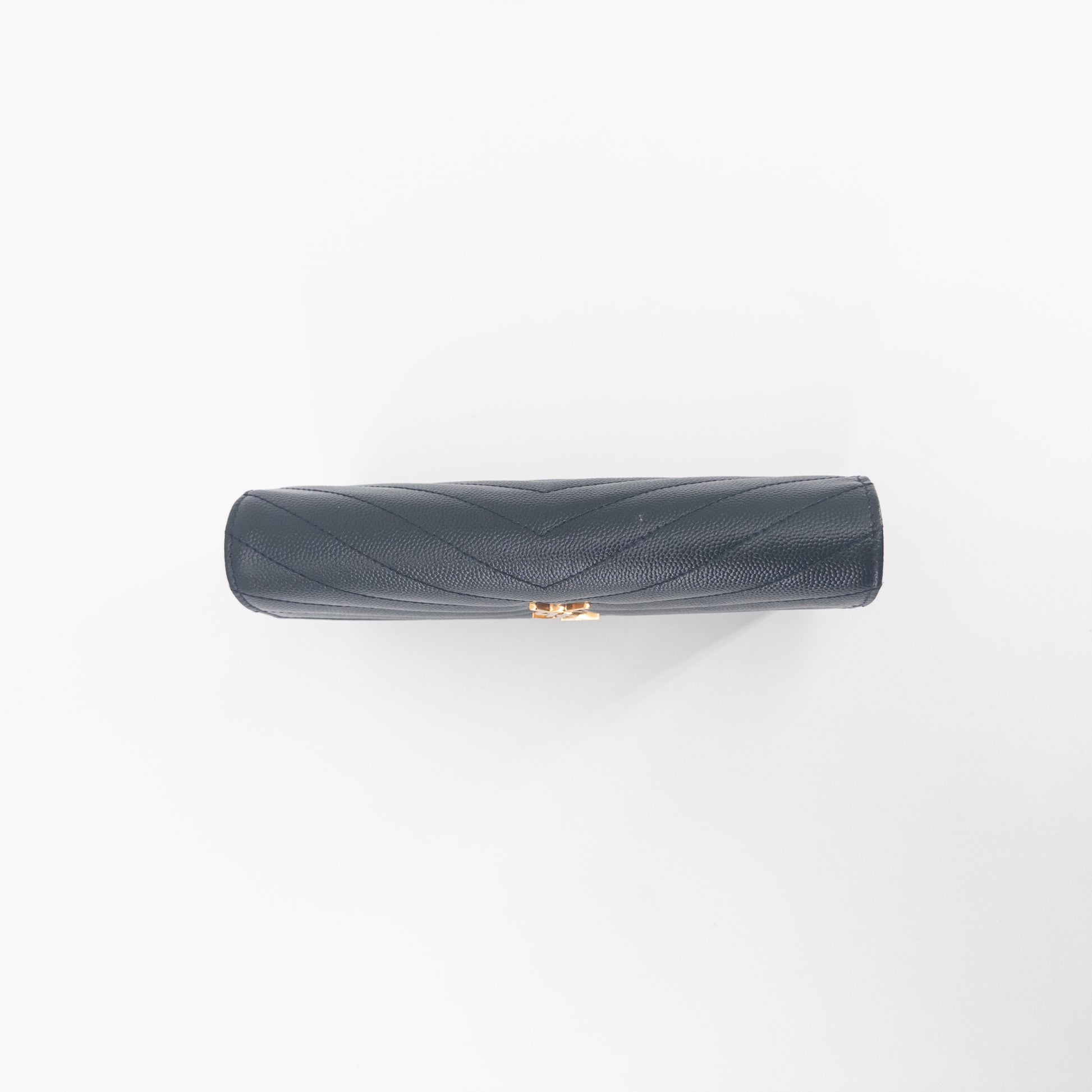 This elegant Saint Laurent Wallet on Chain is the perfect blend of sophistication and practicality. Crafted in luxurious black grained leather with chevron quilting, it features the iconic YSL gold-tone logo and a sleek chain strap — ideal for day-to-night wear.