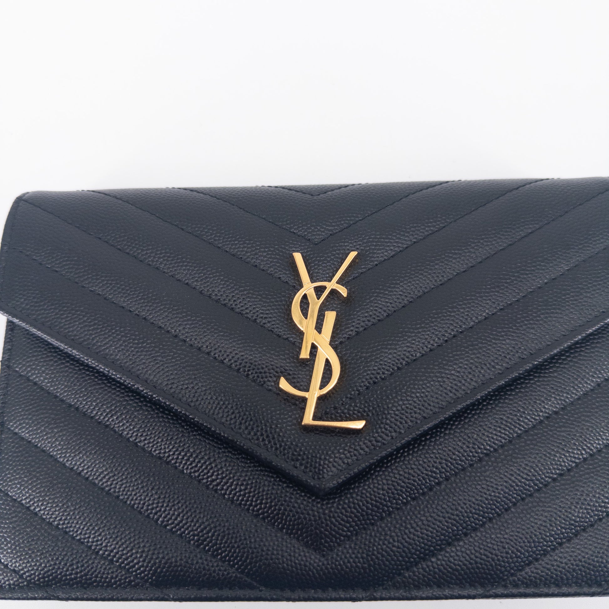 Saint Laurent Wallet on Chain – Grained Leather – Black