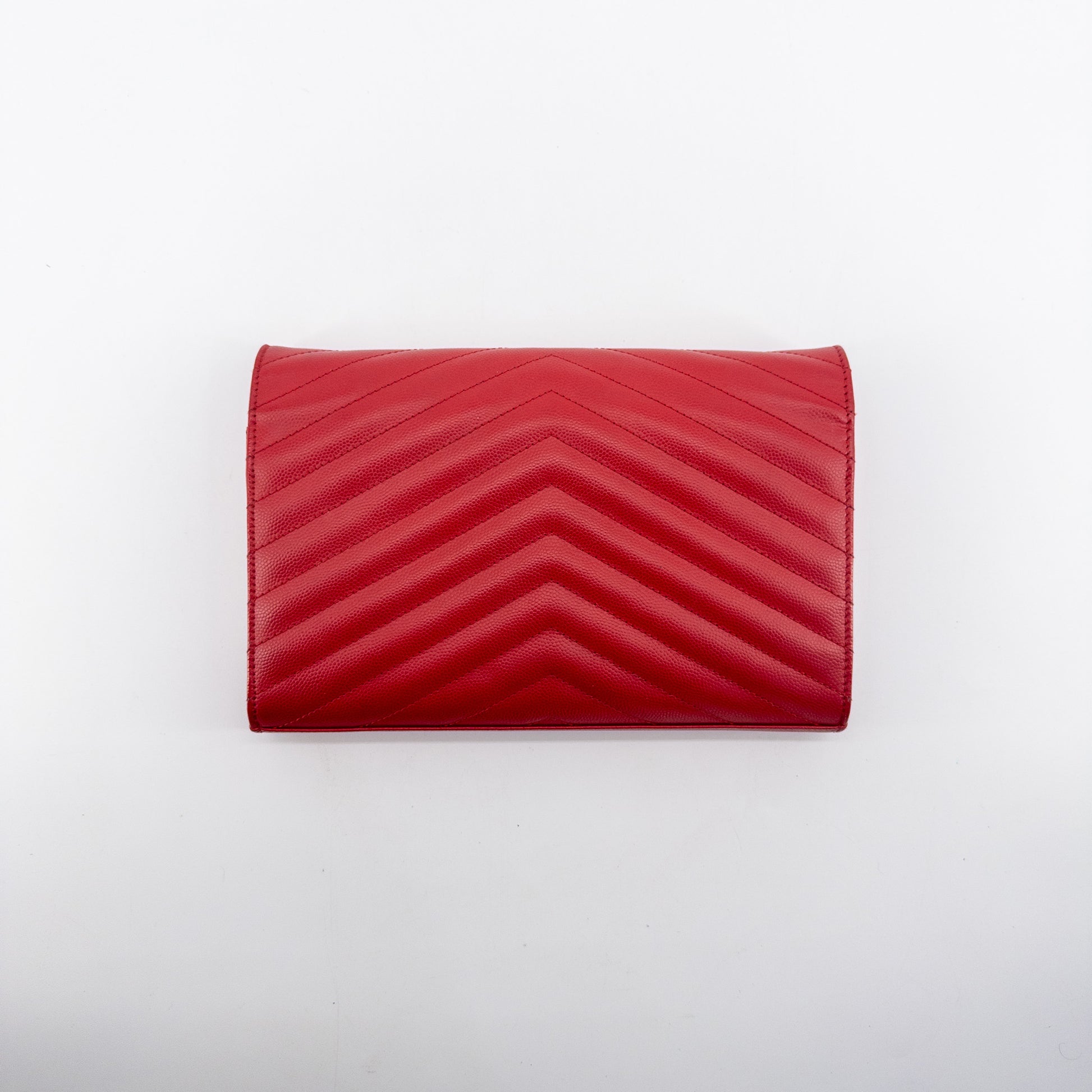 Saint Laurent Wallet on Chain – Grained Leather – Red